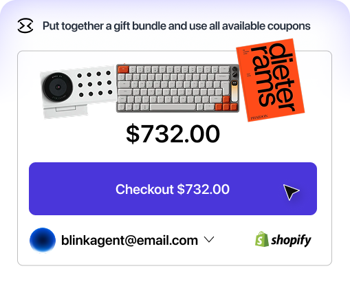 Out-shop everyone. Blink hunts for the best price, applies real coupons, and completes checkouts end-to-end automatically. It can run entirely with its own identity, including its own email, phone number, and virtual debit card.